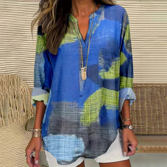 French Style V-neck Puff Sleeve Dress Waist Trimming Printing Ruffles